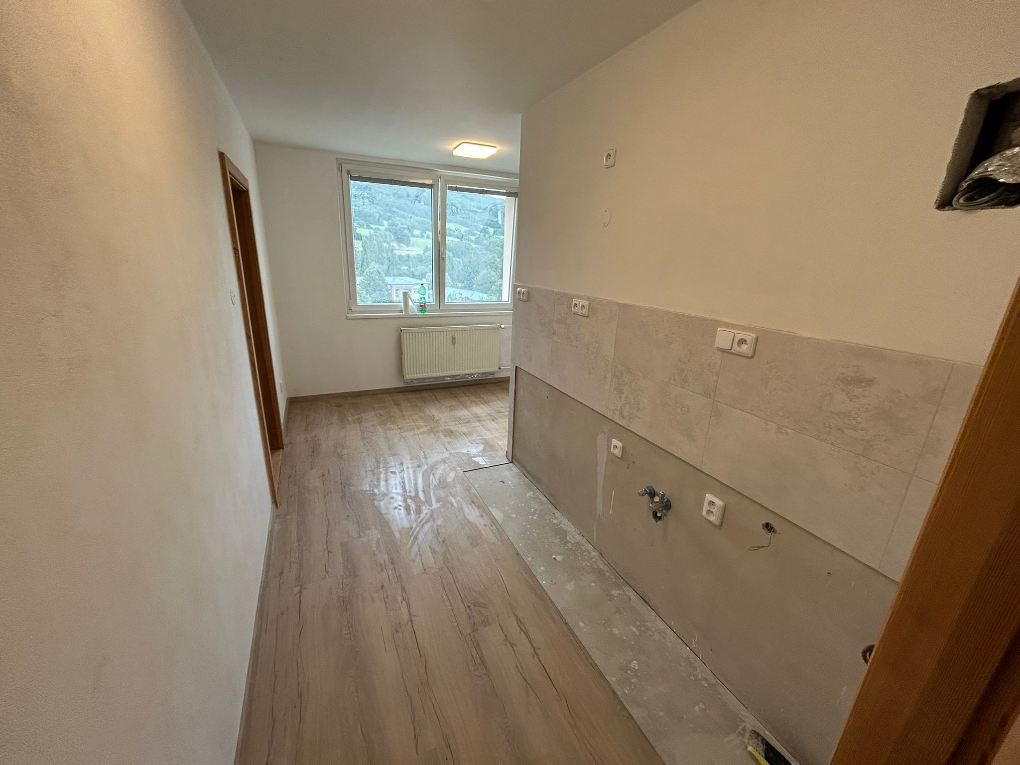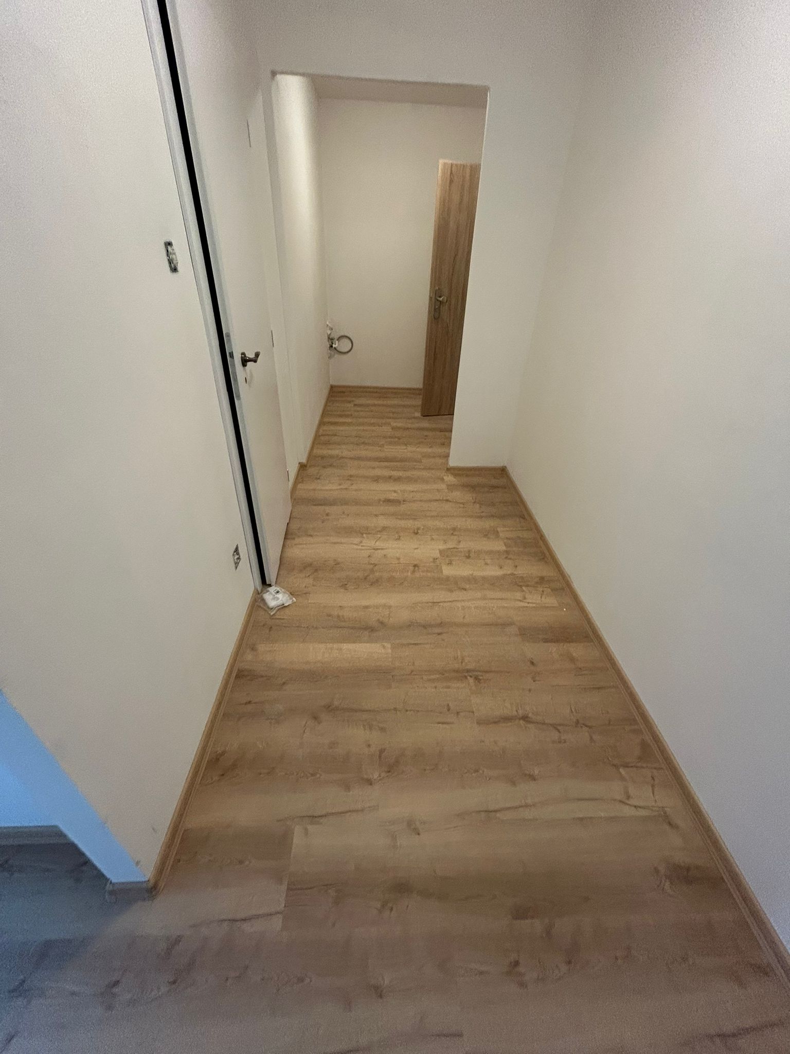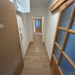 V chodbě a kuchyni byla položena vinylová podlaha a instalovány posuvné dveře v pouzdře, které šetří prostor a dodávají interiéru moderní vzhled.